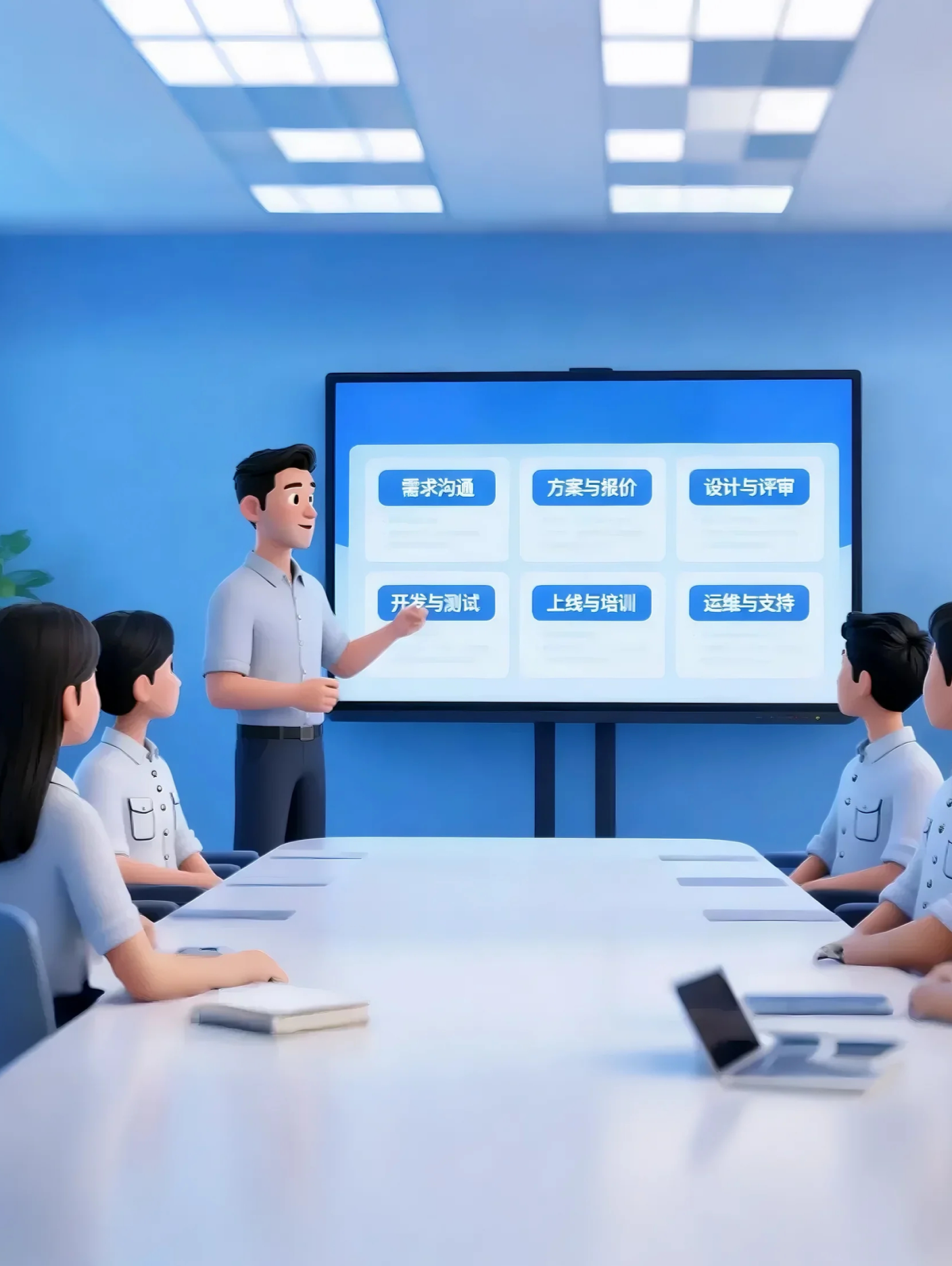我們遵循清晰透明的合作流程:需求溝通 → 方案與報價 → 設計與評審 → 開發與測試 → 上線與培訓 → 運維與支持每個階段都會與您充分確認,確保項目方向準確。